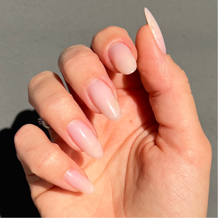 Den er så smuk. Neglen bliver naturligt lysere og så med glimmer i.