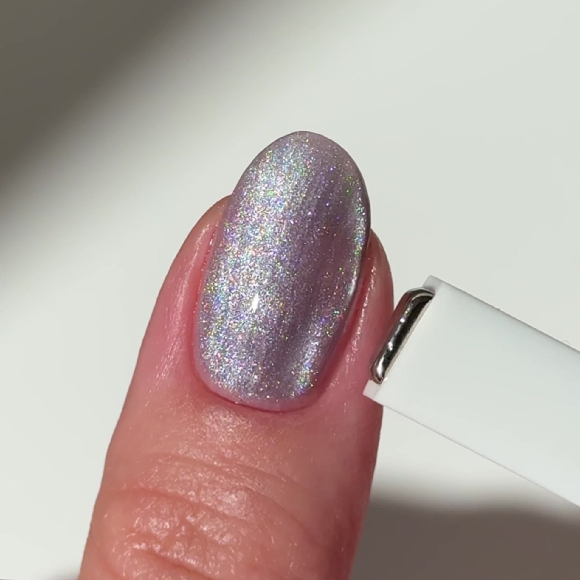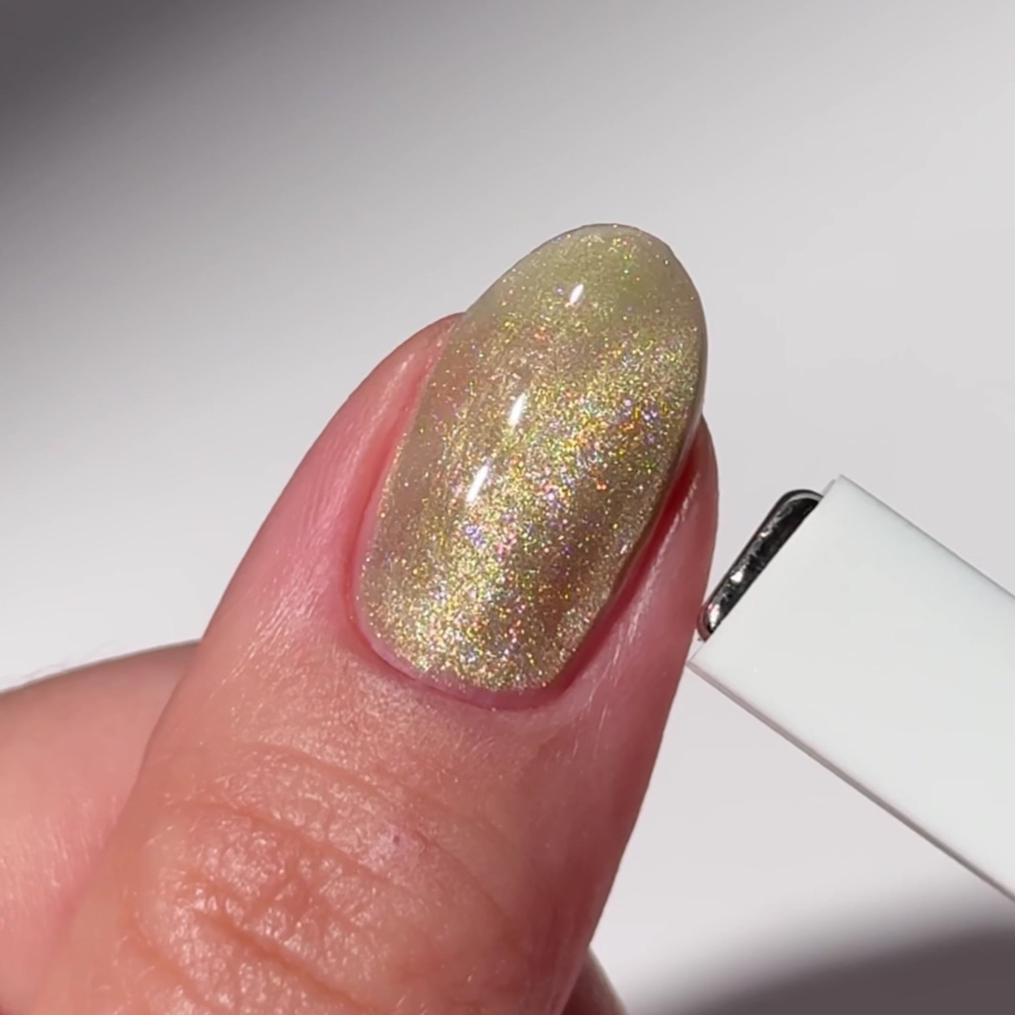 - Apply a second coat of Cat Eye Gel Polish and use the accompanying Cat Eye Magnet to create your desired pattern. Once the pattern is as desired, cure quickly in the UV/LED lamp to set the design.