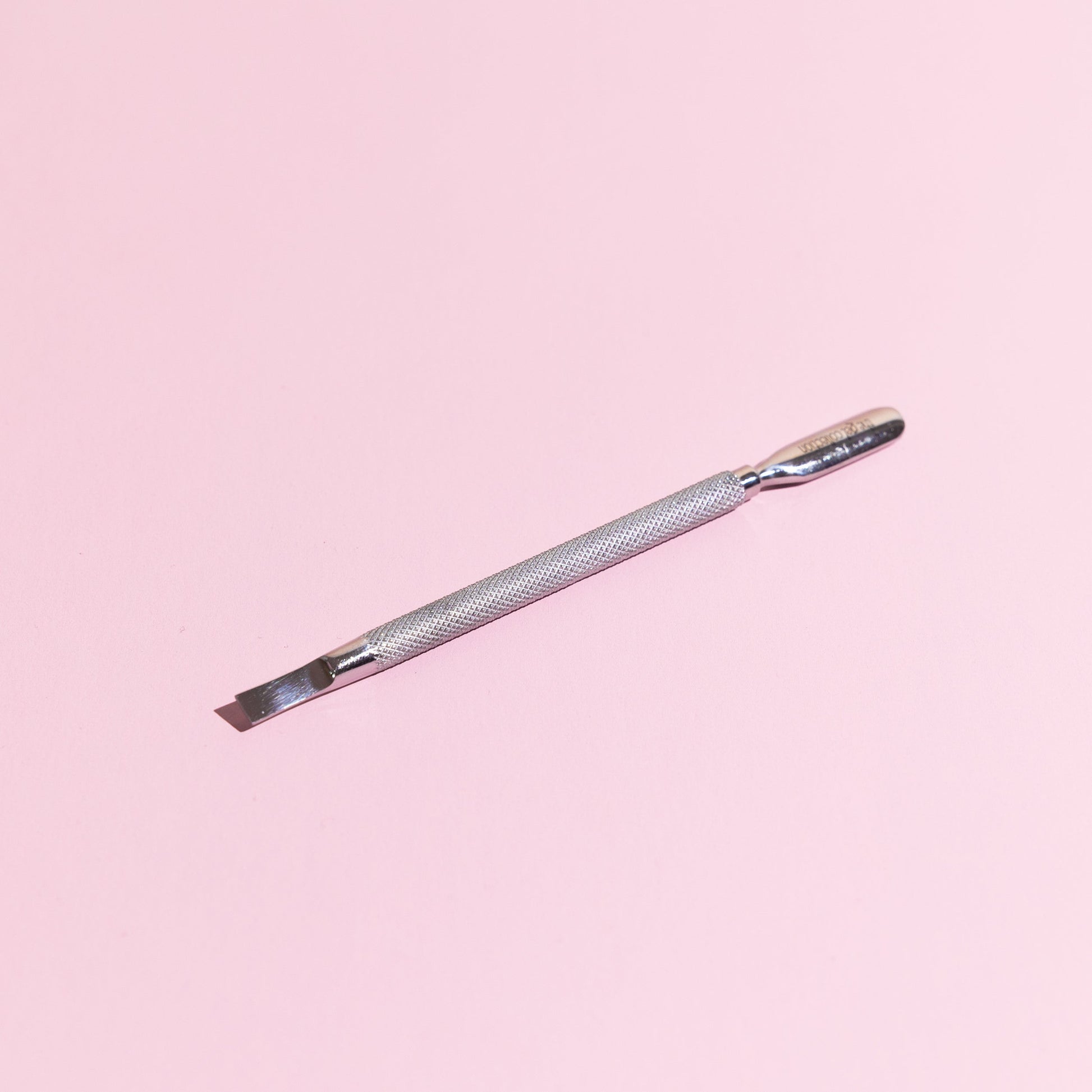 This dual-ended cuticle pusher from The Gel Collection is made of premium surgical-grade stainless steel. On one end, it has a razor-sharp curved scraper that easily removes the invisible cuticle from the nail plate. On the opposite end, there is a sharp pusher that, with its curved shape, pushes both skin and cuticle back. Its textured midsection provides a firm grip and comfortable use.