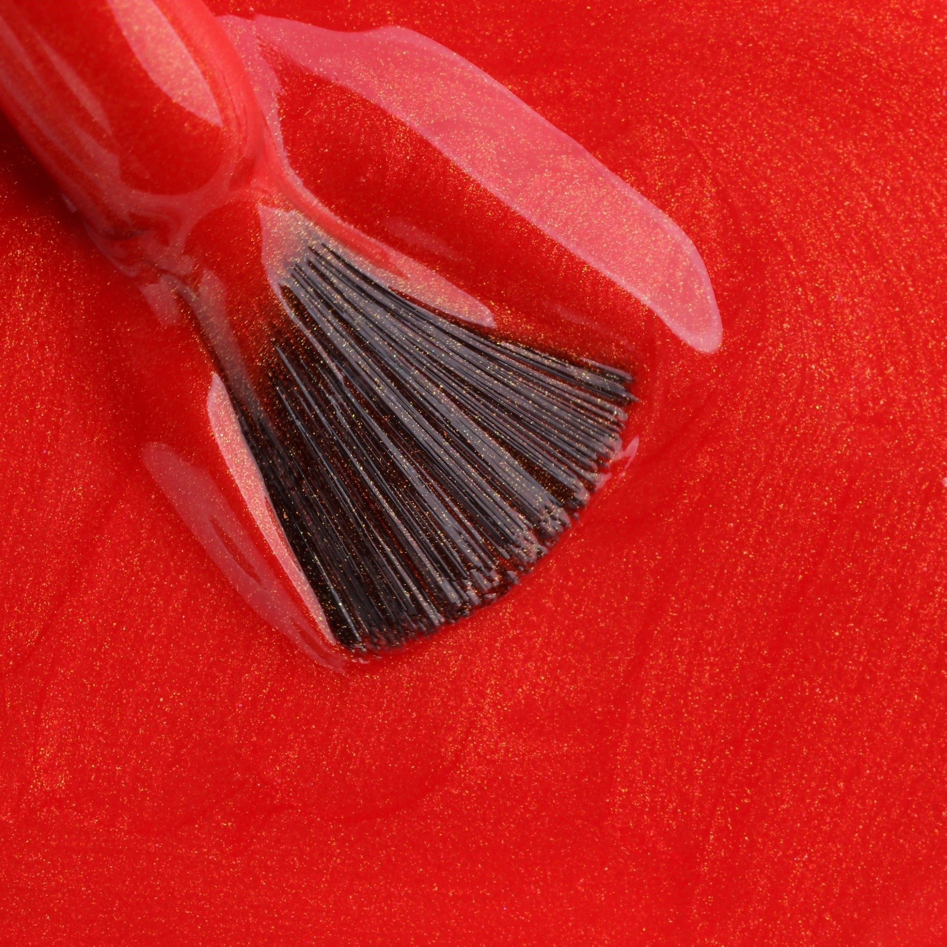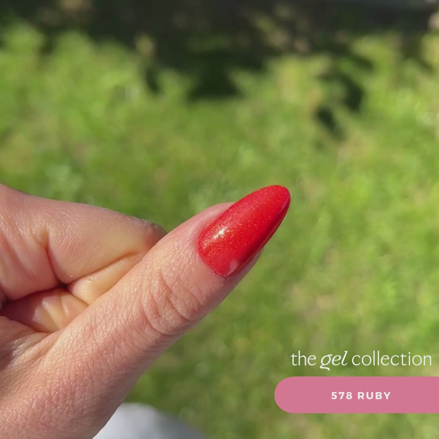 578 Ruby from The Gel Collection is a red with a warm orange undertone and golden shimmer like a passionate sunset casting its rays over the depths of the ocean. This color combines intensity, warmth, and luxury, adding a radiant and bold beauty to your nails that captures attention with a golden touch of glamour.
