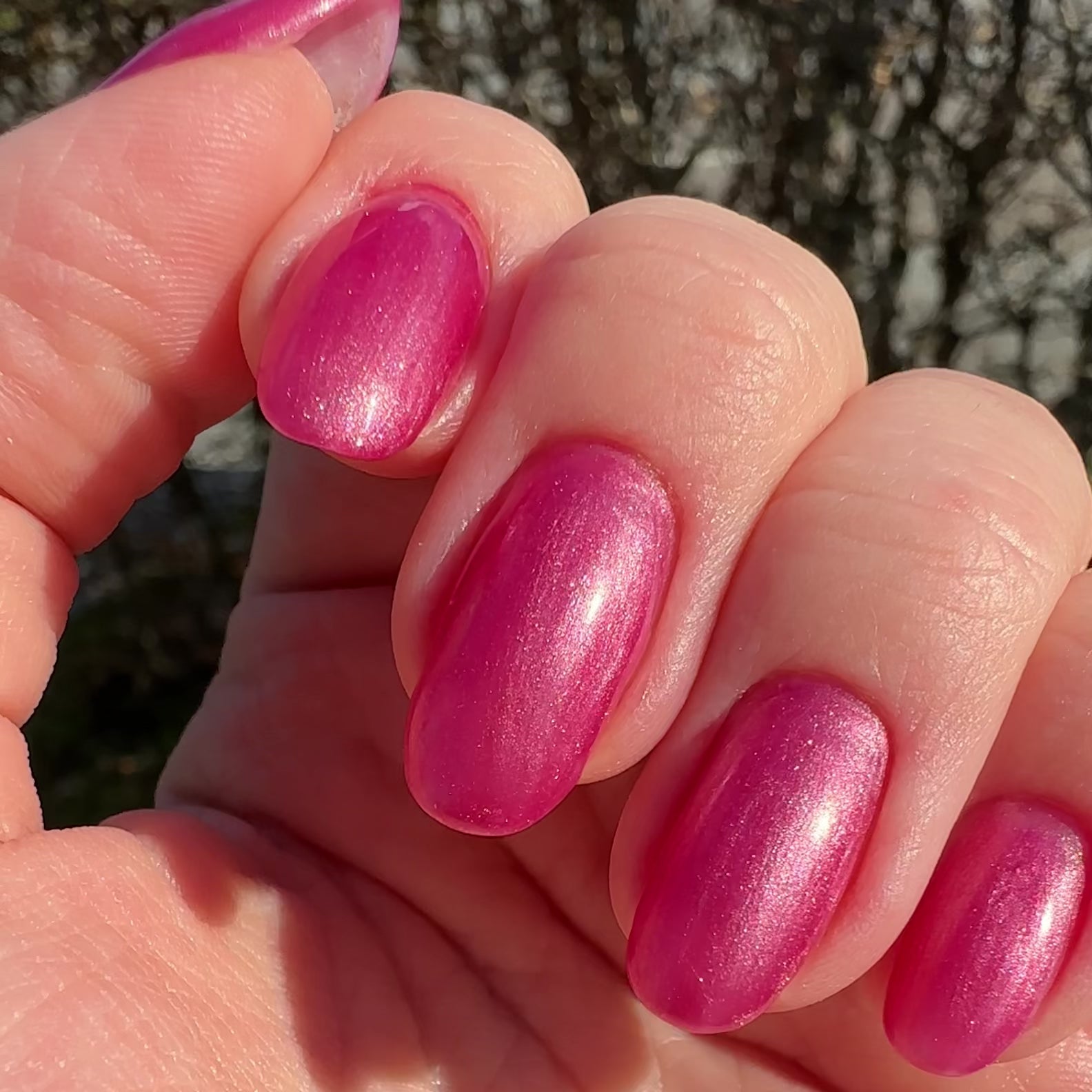 585 Going Out from The Gel Collection is the most beautiful dark pink filled with small fine glitter pieces. It is semi-transparent with 1-2 layers and can be advantageously applied on top of another base color to create your own unique look. It is fully opaque and absolutely fabulous with 3 layers.