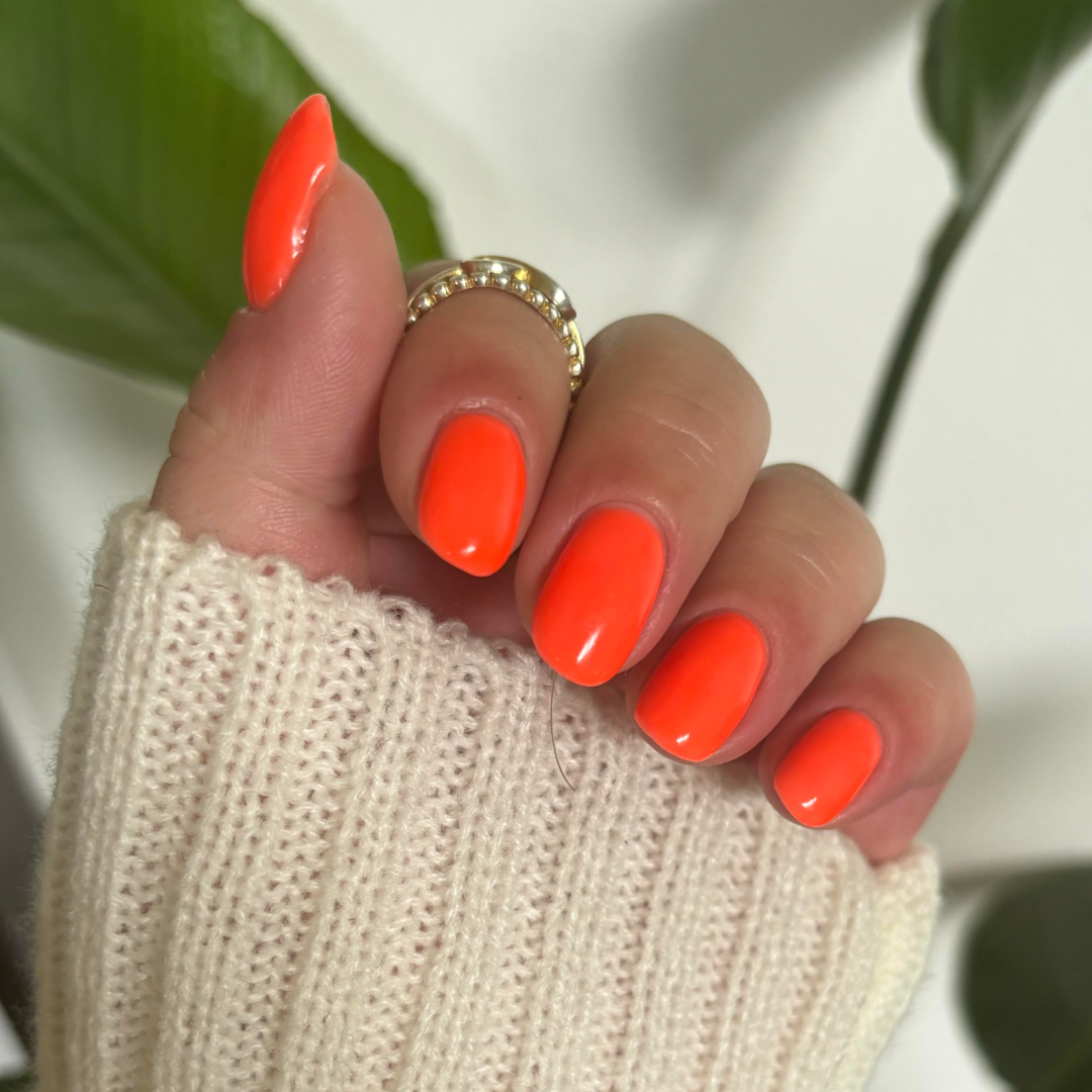 662 Wild Fiesta from The Gel Collection is a semi-transparent and passionate orange color, full of vibrant energy and intensity.