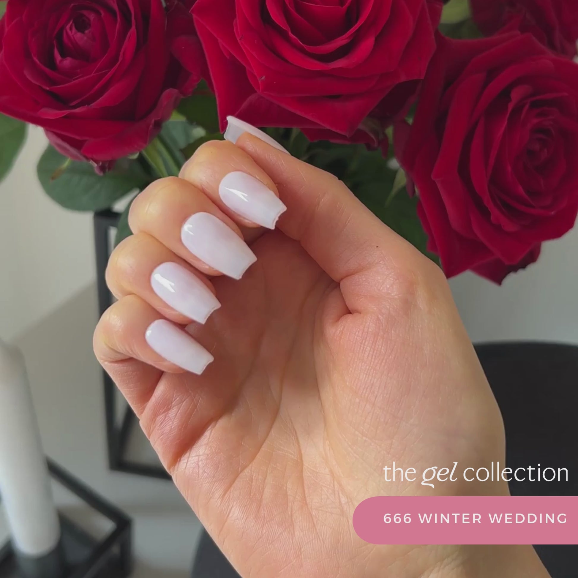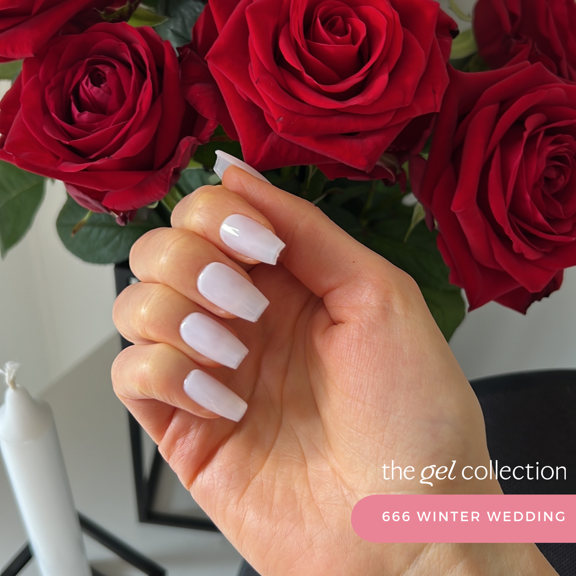 666 Winter Wedding from The Gel Collection is a delicate and muted semi-transparent white shade. It resembles the finest frost or the first glow of dawn on a winter morning.