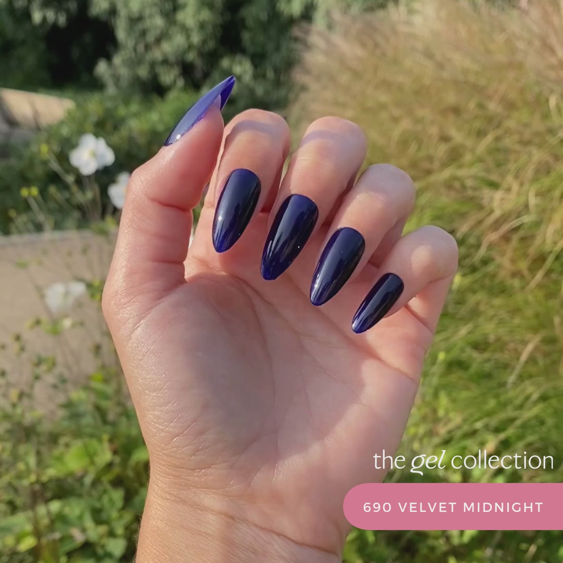 690 Velvet Midnight from The Gel Collection is a very dark semi-transparent blue. The color evokes associations with the night when the stars shine brightest. With its enchanting shade, Velvet Midnight will give your nails a touch of mystique and elegance.