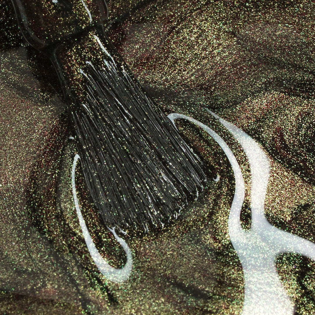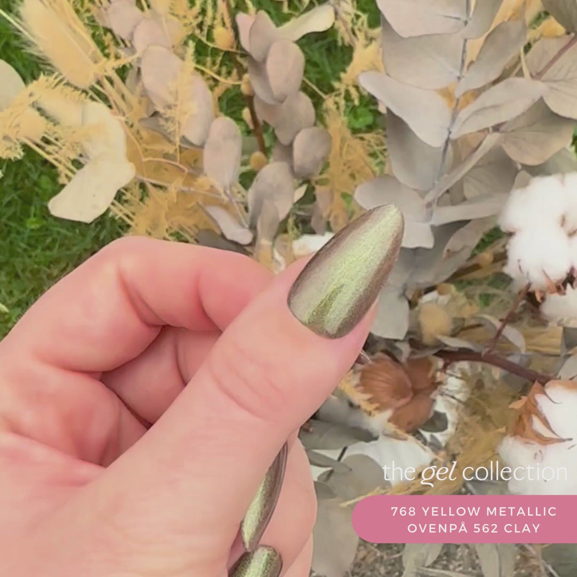 768 Yellow Metallic from The Gel Collection is a semi-transparent metallic brown with strong yellow shimmer and sheen. It shines in changing shades depending on the light.