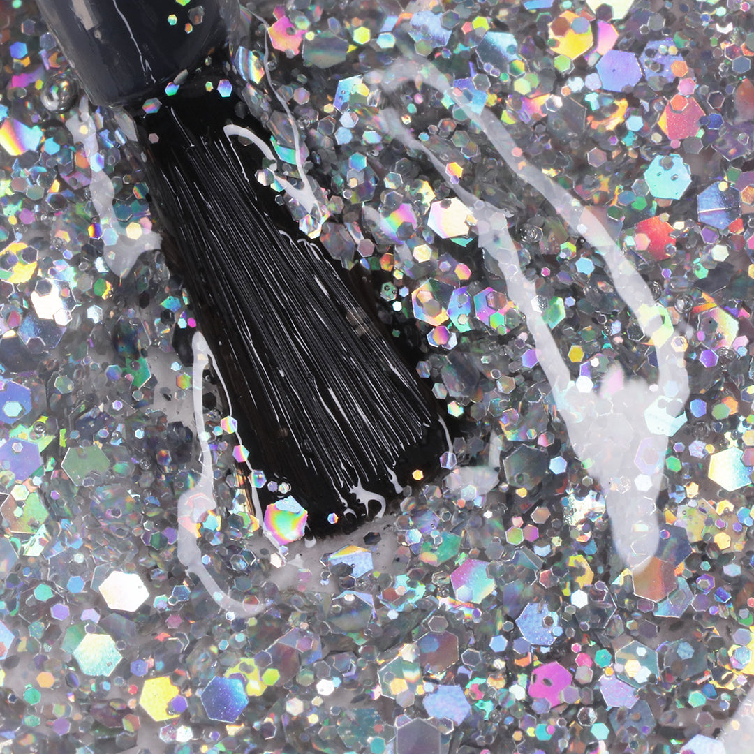775 Diamond Dream from The Gel Collection is a clear transparent Gel Polish with both large and small silver glitter pieces that instantly bring life and glamour to your nails.