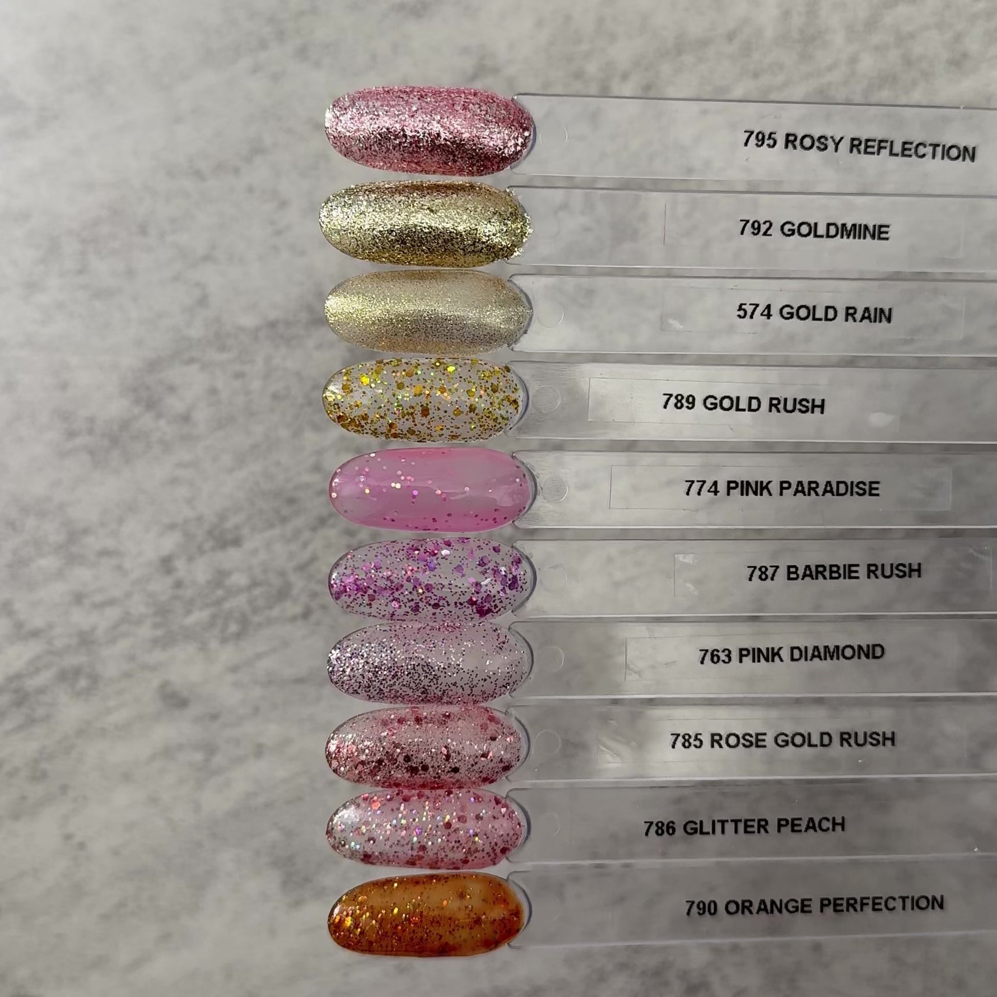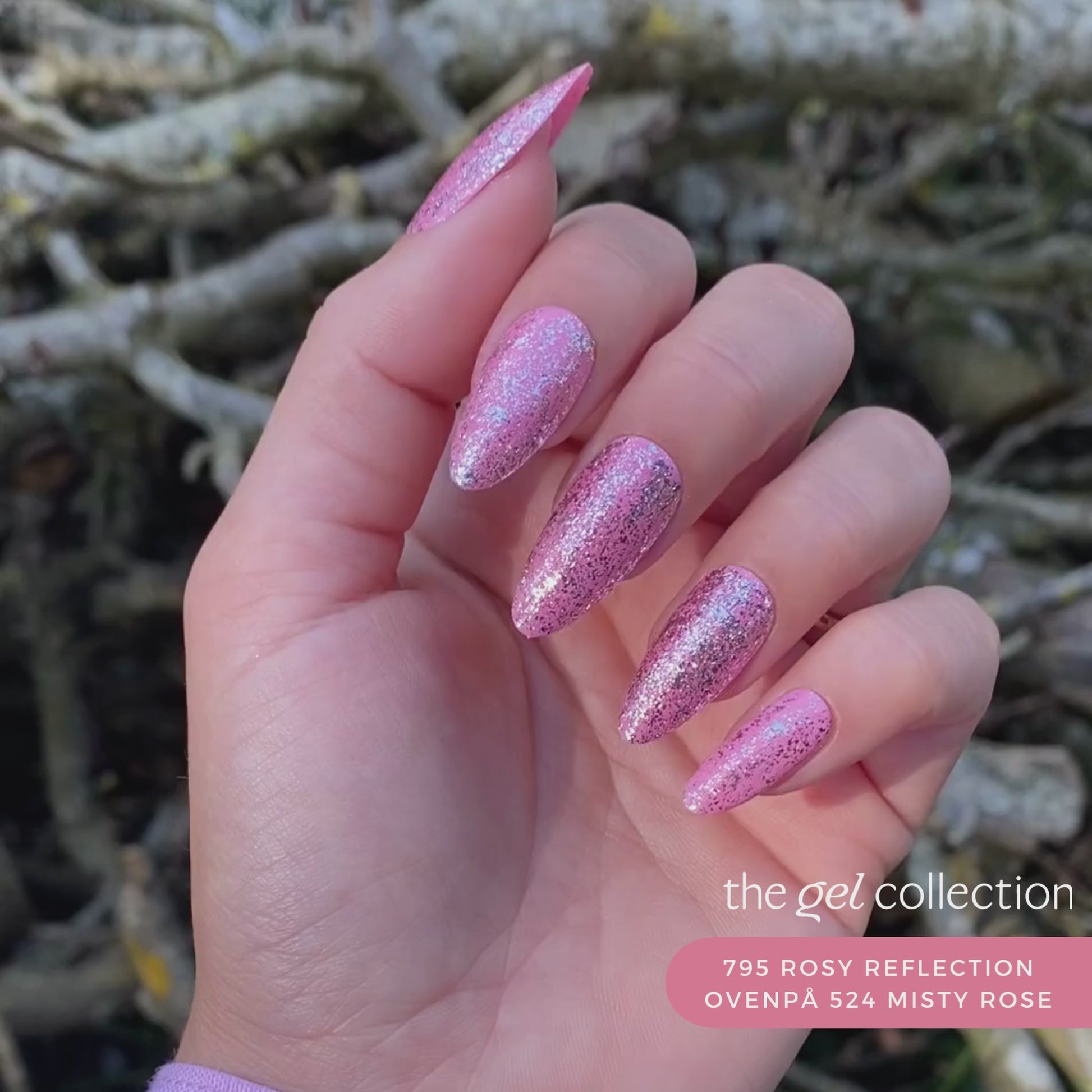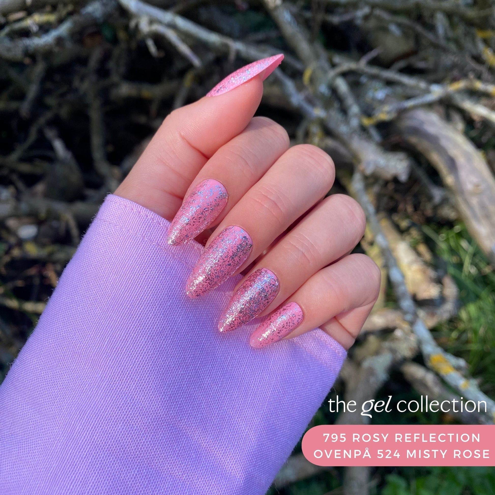 795 Rosy Reflection from The Gel Collection is a pink semi-transparent glitter color that exudes elegance and a charming femininity. When you apply it to your nails, you immediately feel a sense of lightness and joy, as if you are carrying a bit of magic with you in your everyday life.