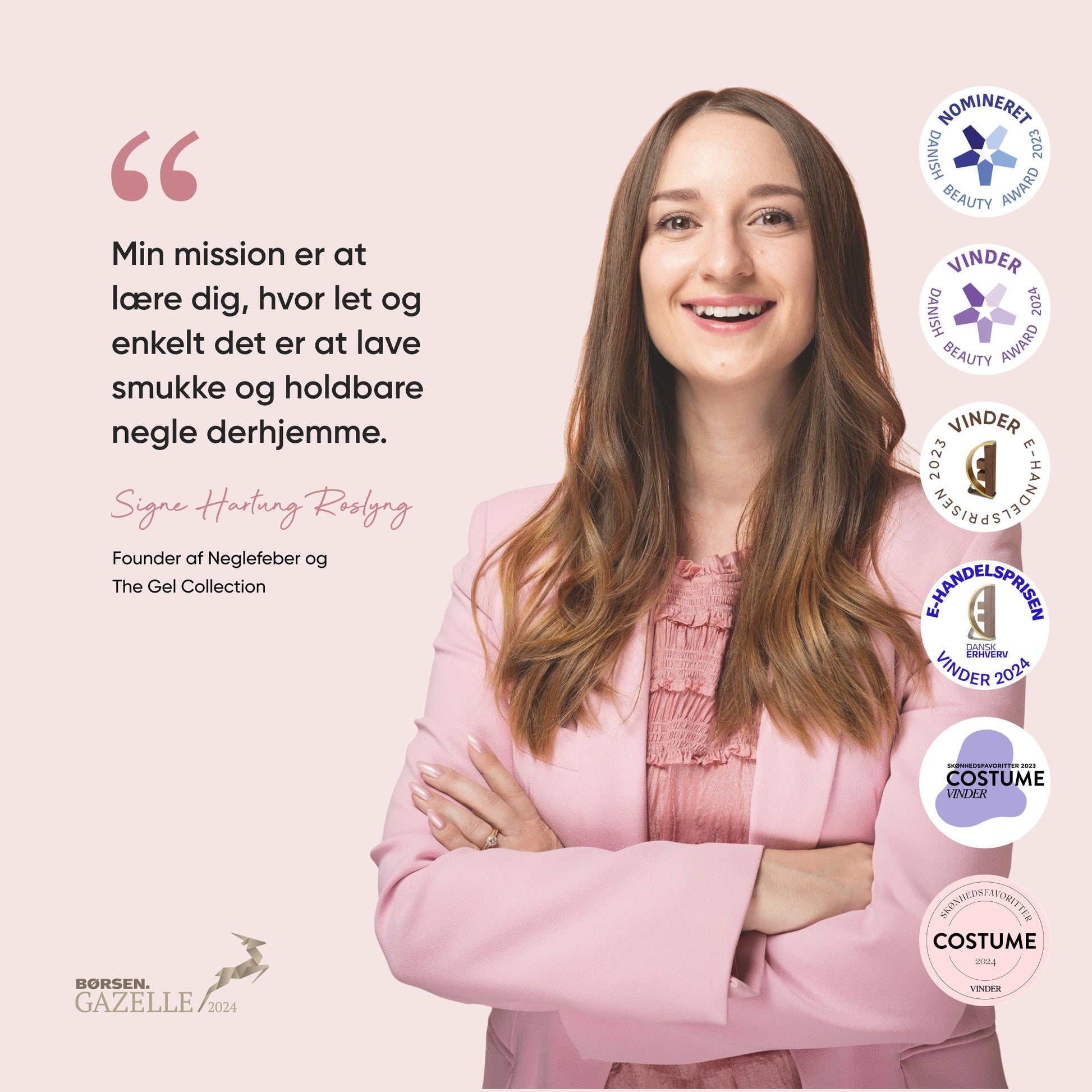 Signe Hartung Roslyng (b. 1994) is a recognised nail expert and entrepreneur behind the award-winning companies Neglefeber and The Gel Collection.