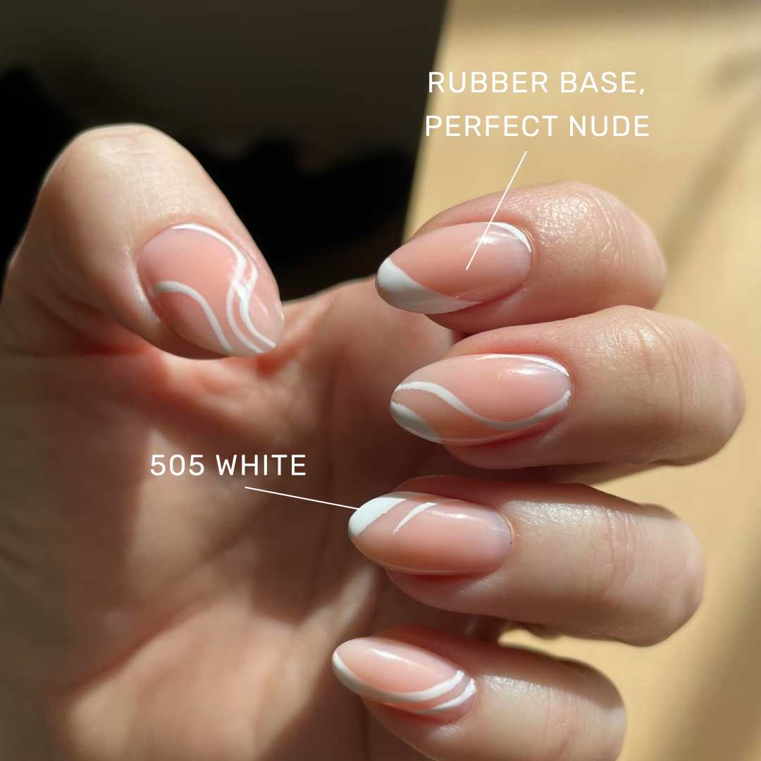 Rubber Base combines the best of Gel Polish and Builder Gel, as Rubber Base is a thicker Gel Polish used to strengthen your natural nails. It is easily applied with the brush from the bottle and spread on the nail.