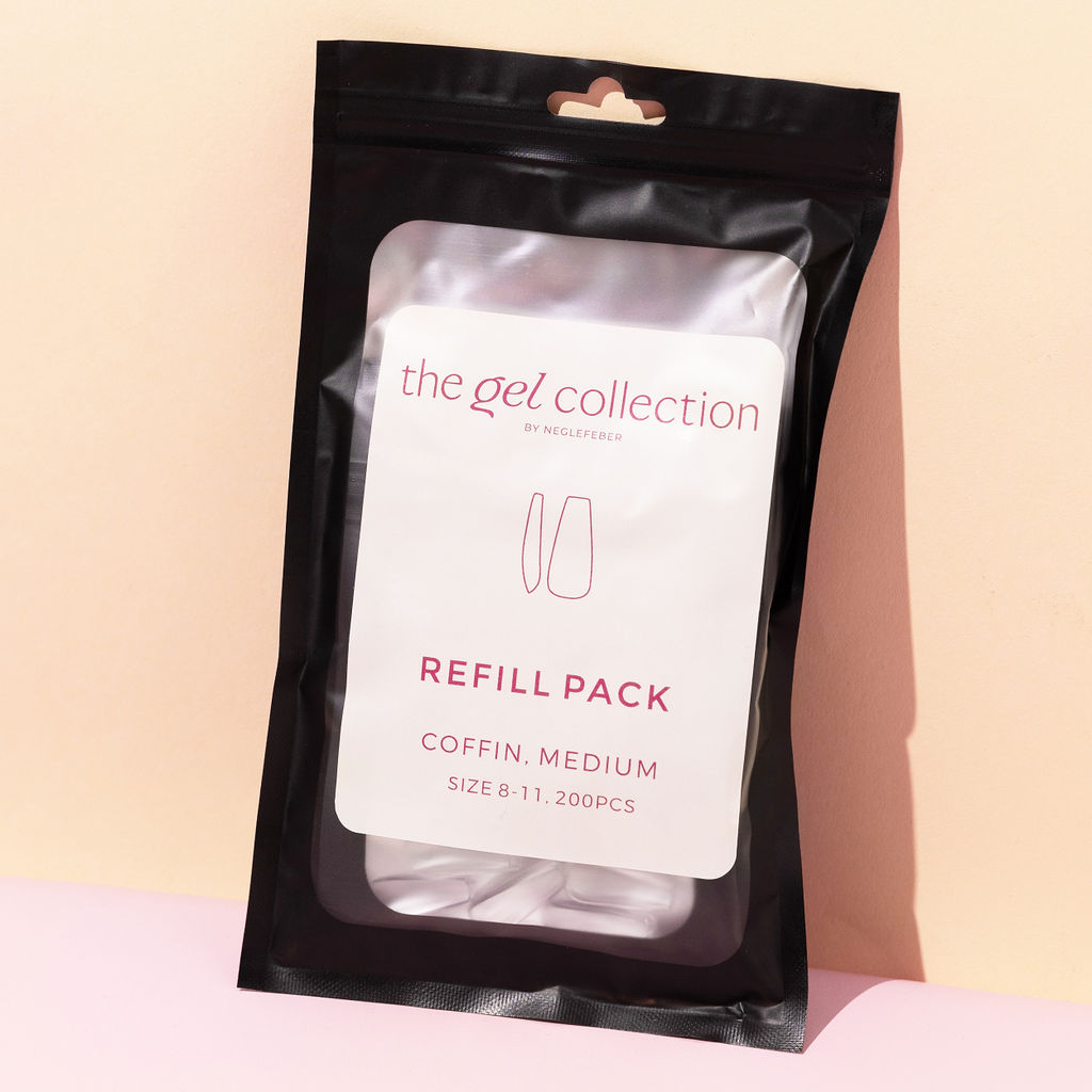 This refill bag with Soft Gel Press On Tips contains a total of 4 x 50 pcs. tips. That is a total of 200 pcs. distributed over 4 different sizes. They are intended to be used as a refill when you run out of the given sizes.