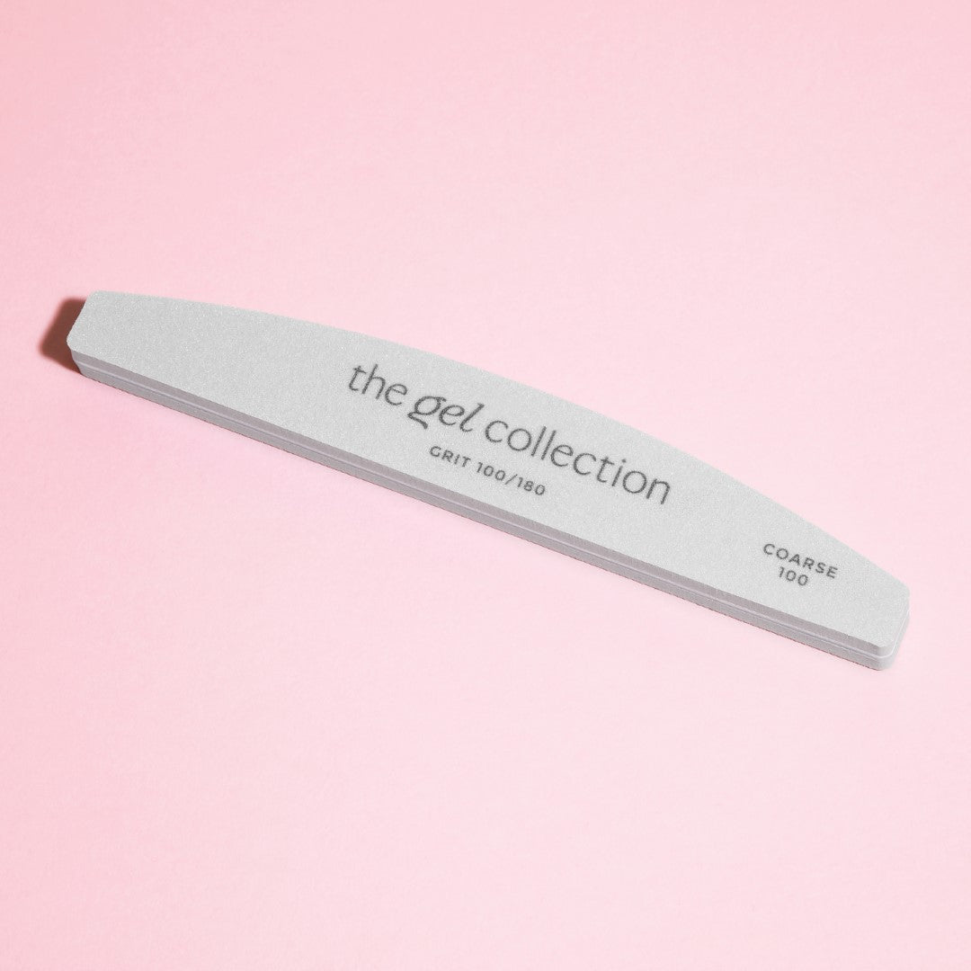 To ensure flexibility in your filing work, the file offers two different coarseness levels; namely grit 100 (coarse) and grit 180 (medium). Grit 100 is good for smoothing the surface of hard products, and grit 180 is good for creating coarseness in the top nail layer before product (prep) and removing excess gel after removal.