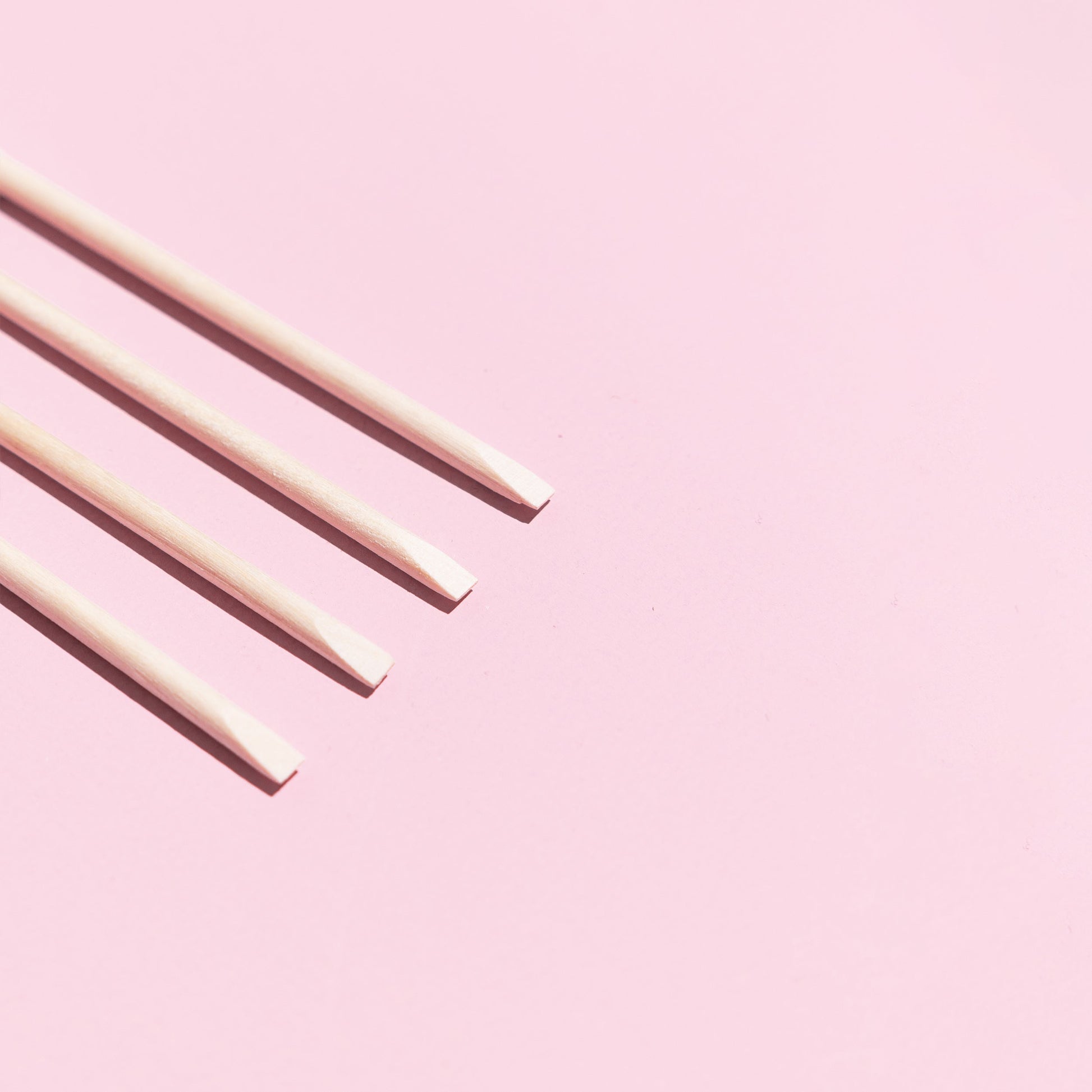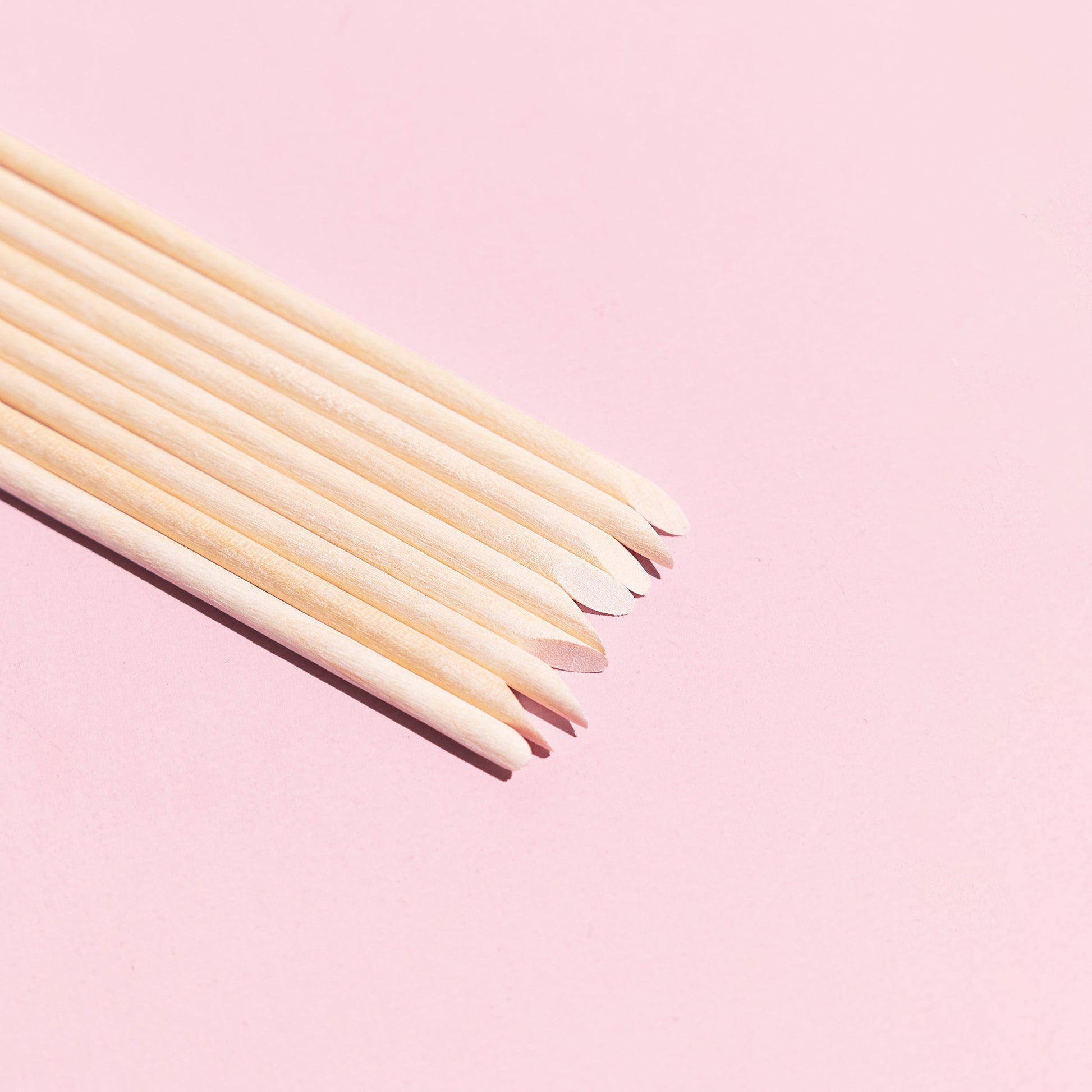 These rosewood sticks from The Gel Collection are an all-in-one tool that anyone doing nails should own. To ensure flexibility, the rosewood sticks offer two different ends. One end is slanted and the other end goes down into a V with a flat tip. Both ends are great for removing product that has mistakenly run into the cuticle area. The wood material ensures easy absorption of the product and is therefore extremely effective at removing running product. In addition to absorbing, the rosewood stick is also ideal for scraping off dissolved product after soaking off with acetone. Due to the soft core of the wood, you can easily and effectively scrape off the product without damaging the natural nail. The rosewood sticks can also be used for everything from pushing cuticles to creating various types of nail art. Only your imagination sets the limits.
